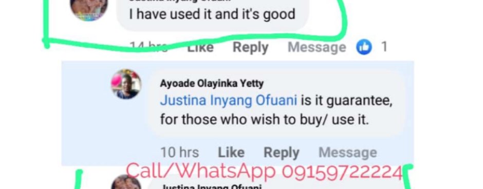 For confidentiality purposes, We respect that too. If you want to be the next person to testify, just click the button below to orders yours from our WhatsApp number and you get 24/7 customer care support
