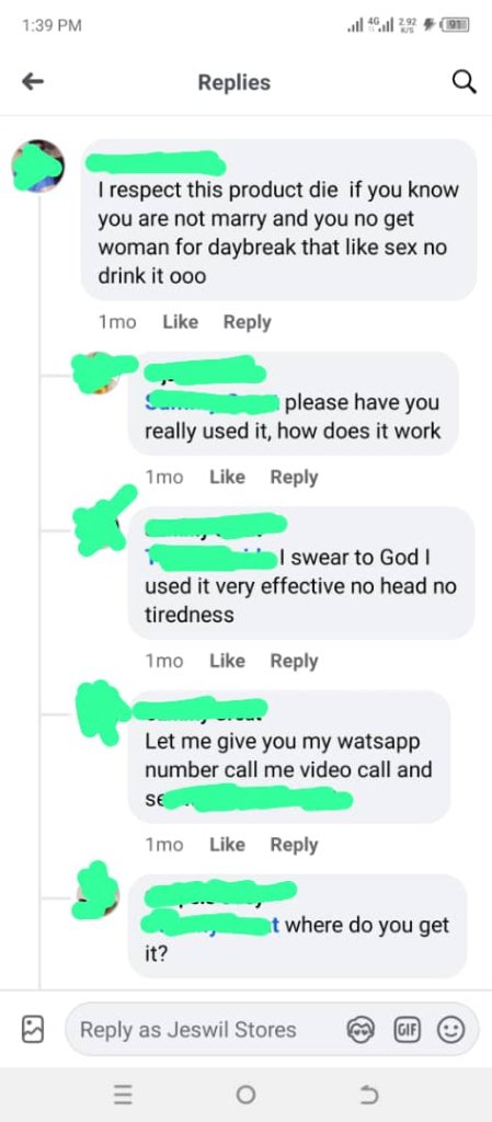 Ghanaja kills Premature Ejaculation Faster and Helps in Making the Erection Hard. Imagine with just 2 Table Spoon in a Day , You’ll see a Result that will make you say WOW and by the time You are done you’re done with the whole bottle, You won’t have a choice than to send your Testimony Across Just like Others Have Done.