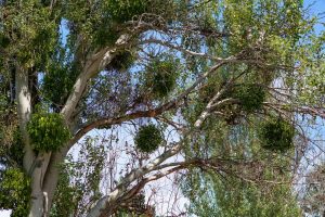 The most commonly used mistletoe species for medicinal purposes is Viscum album or European mistletoe. It is a green, evergreen plant with small, leathery leaves and small, white berries. Mistletoe grows on the branches or trunks of host trees, and it derives some of its nutrients from the tree, hence the term “semi-parasitic.”